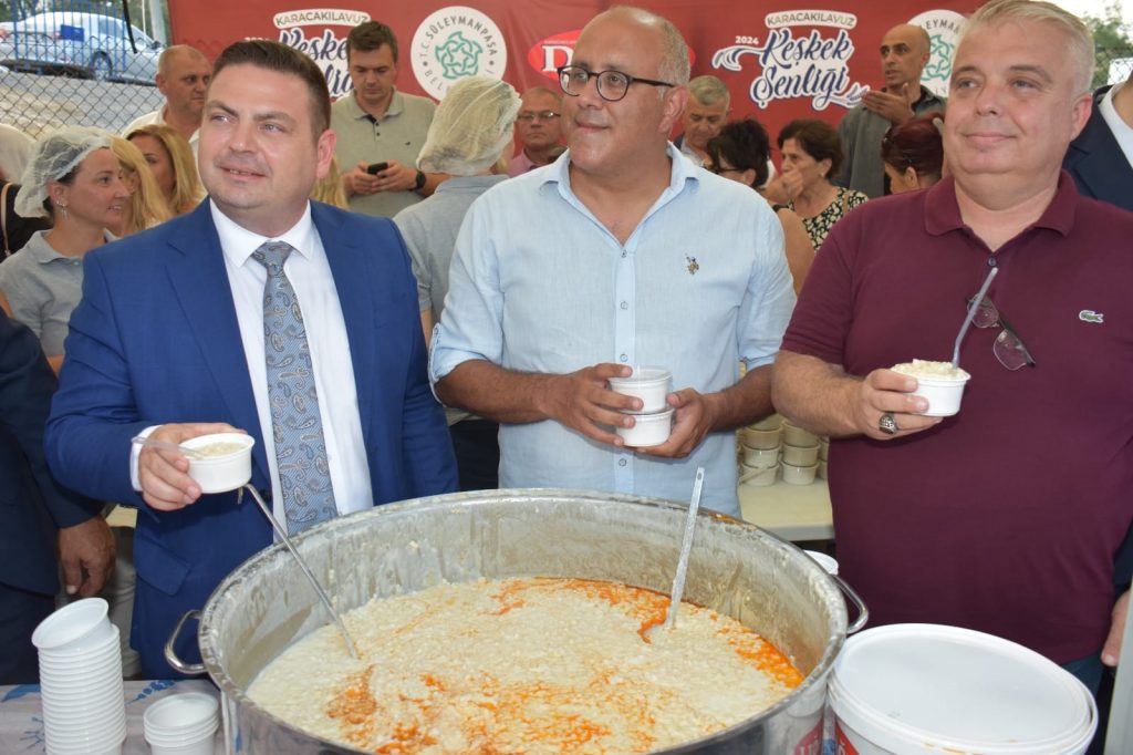 Süleymanpaşa Kaymakamı Mustafa Güler ve Süleymanpaşa Belediyesi Başkanvekili Emin Benan Utku ile birlikte protokol temsilcileri,Süleymanpaşa Belediyesi tarafından hazırlanan keşkekleri şenlik alanına gelen vatandaşlara ikram etti.